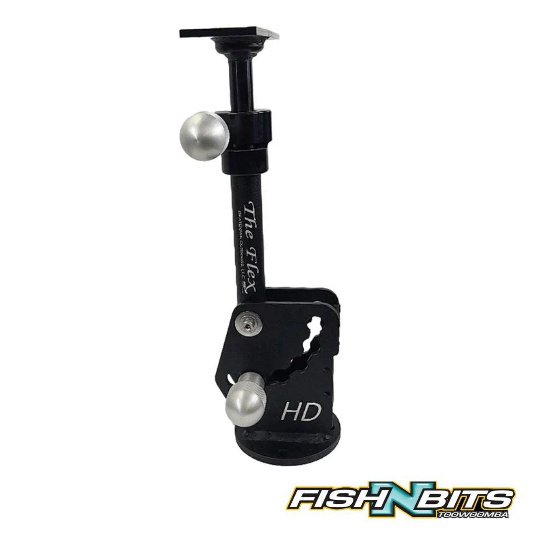 Upgrade your fishing setup with the BeatDown Outdoors Flex HD Graph Mount. This sturdy graph mount features 6 adjustable locking positions and is perfect for holding 2 fish finders, making it ideal for a double stack option. The Flex HD has a heavier base then the Flex which gives you more height. The Flex HD is 18 1/2 inches at the lowest vertical point and it raises up to 26 inches.