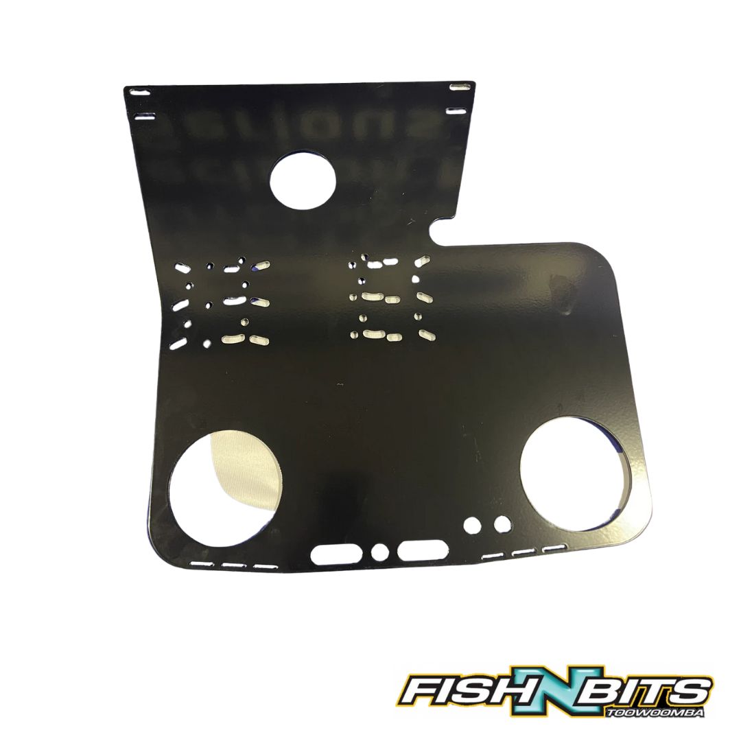 The beatdown ultimate tool tray light bar plate.suits beatdown pole mounts ,has two stainless steel cup holders,and provision to mount two of our 13 inch led light bars up front .laser cut 5 mm marine grade aluminium plate and powdercoated for that clean low maintenance finish